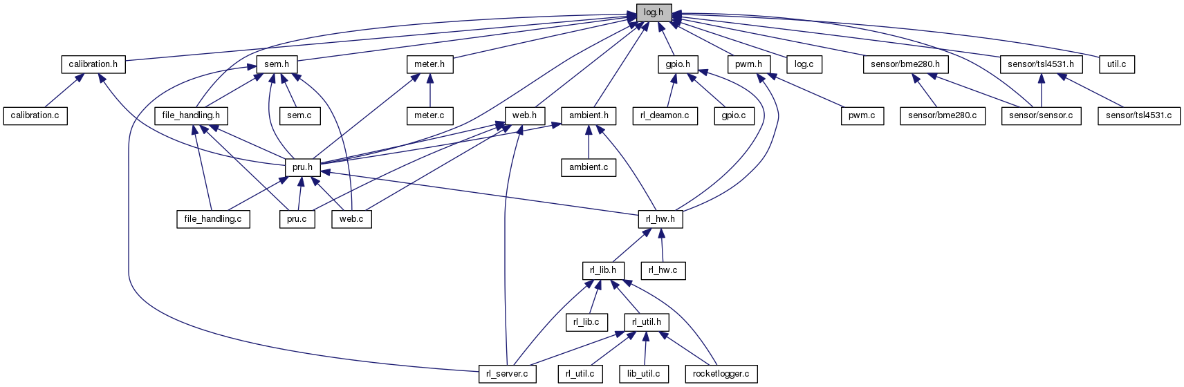 Include dependency graph for log.h: